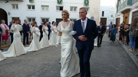 Descubierto uno de los mejores secretos guardados, las damas del Rosario, del brazo de sus acompañantes, con caras de alegría, partían sobre las 20.00 horas andando por la calle Constitución hasta llegar a las puertas del Palacio Municipal Castillo de Luna donde el alcalde de Rota, Javier Ruiz y la delegada de Fiestas, Esther García, junto a miembros de la Corporación municipal, han recibido a las jóvenes dándoles la bienvenida en una noche especial. Y es que aunque haya un sector de la población que considera que este tipo de actos se han quedado anticuado, es innegable la ilusión de muchas jóvenes por participar en las fiestas de su pueblo representando este papel, así que para todas ellas, ha sido una tarde ilusionante.