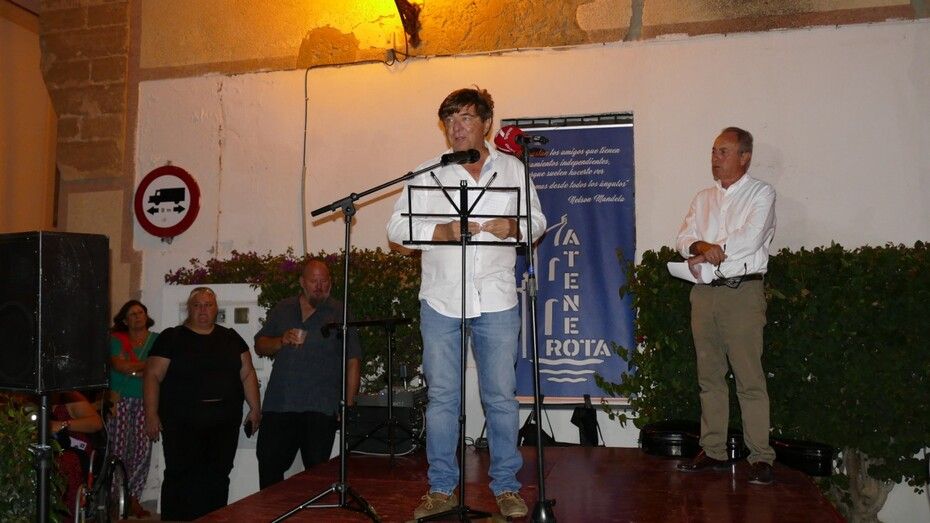 El Medalla de Oro de Andalucía, Premio Nacional de Cultura y Premio Goya por la canción de 'Intemperie' de Benito Zambrano, es "generosidad y cercanía", decía el presidente del Ateneo que abogó por la libertad de expresión, por construir caminos para hacer un mundo mejor, donde la cultura y la poesía tengan un espacio. Francisco Sánchez Alonso se refirió a las canciones del también poeta como hermosas y solidarias, personales y universales, humanas y artísticas, donde siempre hay humor y alegría, sintiéndose honrado de que ahora forme parte de la 'Senda de la poesía' que asegura el presidente del Ateneo, que será el inicio de un proyecto más potente que aún tienen pendiente para que Rota sea un referente.