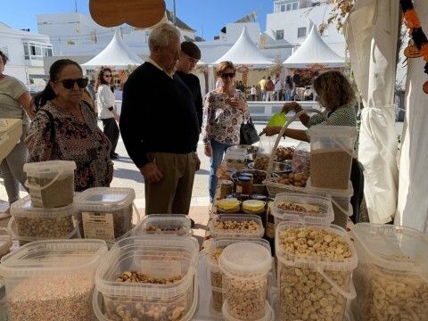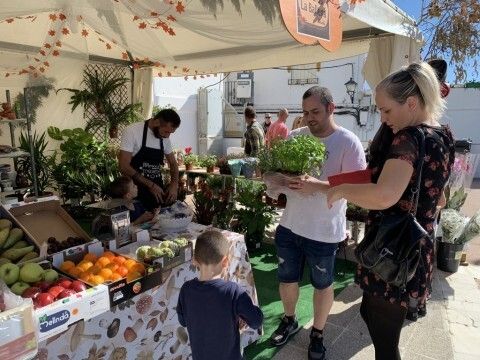 En estos primeros días, el Mercdo de Tosantos ha sido visitado por muchos ciudadanos aunque la plaza de la Merced no tiene el mismo paso que la plaza de España. Aún así, ayer miércoles festivo del 1 de noviembre, fue un buen día y se espera que el fin de semana también sea productivo para los ocho stands que participan: Buñuelos 'Rocío', Cervezas Malandar, Delicias del Monasterio del Espíritu Santo, 'El Bucarito', Favi Frutos Secos y Aceitunas, Florida Decor, MielValle Rancho Cortesano y Viveros 'La Ballena'.
