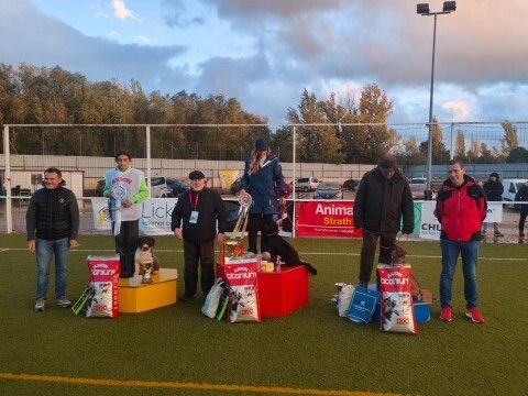 El debut de Jackie en esta Copa en España no ha estado nada mal, subiéndose al podio a la primera, y consiguiendo el premio a la mejor perra de raza española, pero Laura Antón tiene claro que el trabajo debe ir poco a poco, sin agobiar a su nueva perra, que seguirá en clase debutante hasta conseguir las tres clasificaciones de 'Excelente' y con ello, pasar a Clase 1, de mayor nivel.