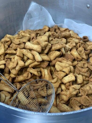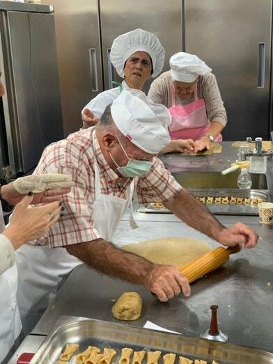 Larga jornada para preparar la masa, dar forma a los pestiños, freírlos y dejarlos listos para degustar mañana martes, pero todo en un ambiente muy navideño, donde los voluntarios estaban encantados entonando incluso villancicos mientras se encontraban, nunca mejor dicho, con las manos en la masa.