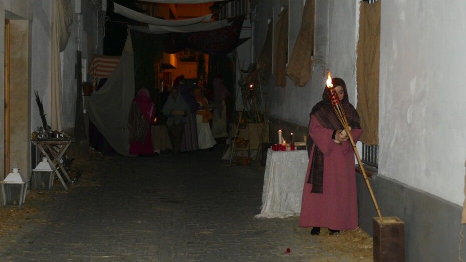 Desde la plaza de España hasta Bartolomé Pérez, ocupa este belén viviente que también tiene enclaves como el Castillo de Luna. En ese recorrido, se puede ver desde cómo dos romanos abren paso hasta la anunciación del Ángel a María, la búsqueda de la posada de María y José, la decisión de Herodes, la adoración de los Reyes Magos, etc., y todo ello, con narraciones que cuentan pasajes sobre el momento más esperado que marca la celebración de la Navidad.