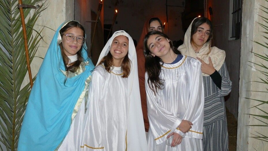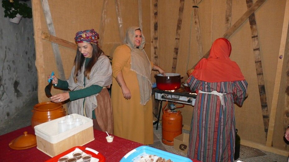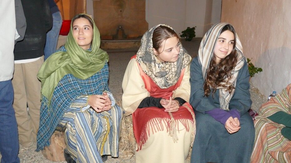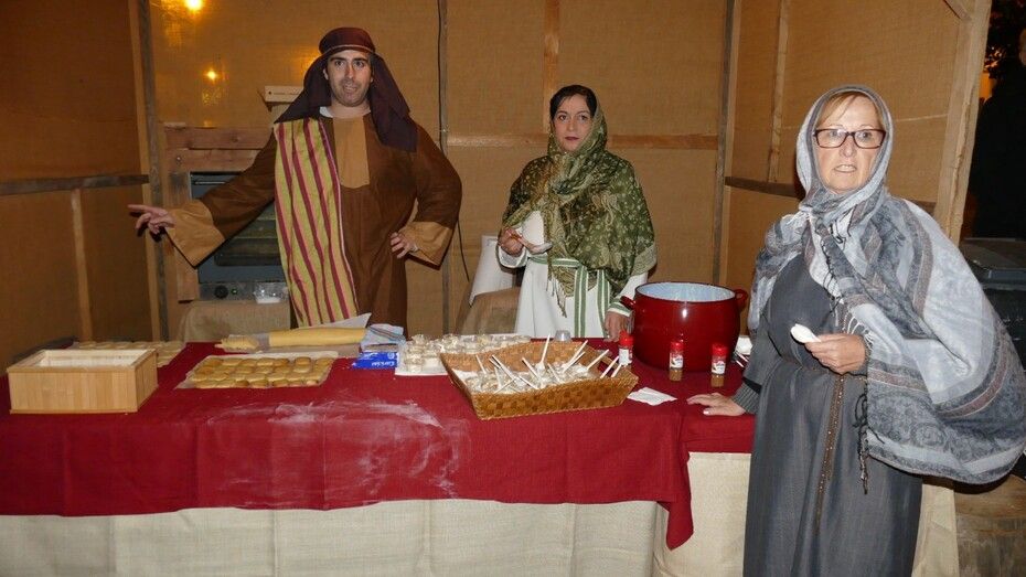 La entrada por la plaza de España ya da muestras de la transformación de las calles del casco histórico que, con permiso y colaboración de los vecinos, se transforman en un pueblo hebreo para escenificar las escenas más representativas en torno al nacimiento de Jesús. Desde luego, el trabajo previo que tienen los alumnos, padres y profesores que se involucran no tiene precio porque el despliegue es tal que este es el único belén viviente narrado por los figurantes de toda la provincia. Para ello, como se ha podido ver en el primer pase que se ha hecho para los chicos de la Asociación de Personas con Discapacidad, ha habido mucho esfuerzo que los cientos de visitantes que los disfrutarán aplaudirán como vienen haciendo cada año.
