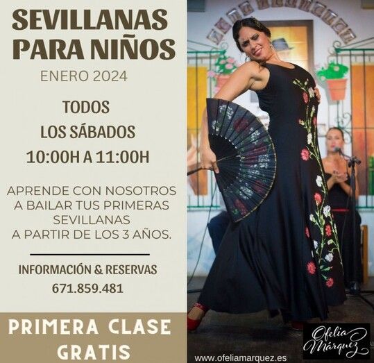 Por un lado, está el curso de iniciación de sevillanas para niños, a partir de los 3 años, que se impartirá todos los sábados de 10.00 a 11.00 horas y que comenzará en este mes de enero con la primera clase gratis. Serán sesiones amenas para aprender a dar los primeros pasos de este baile andaluz.