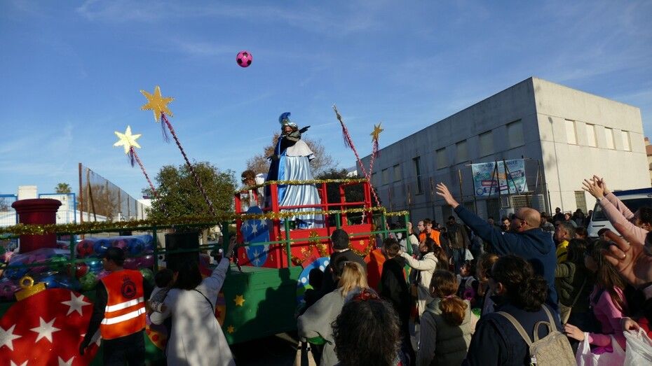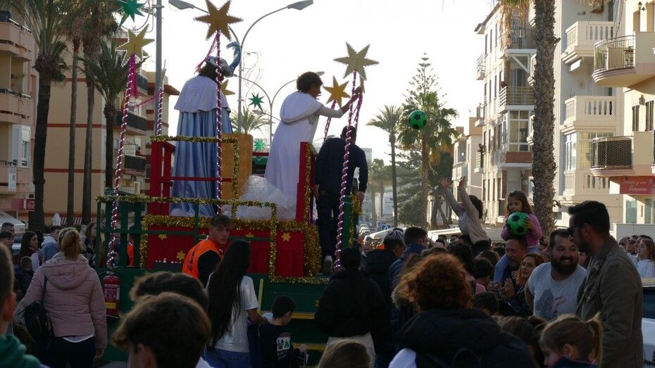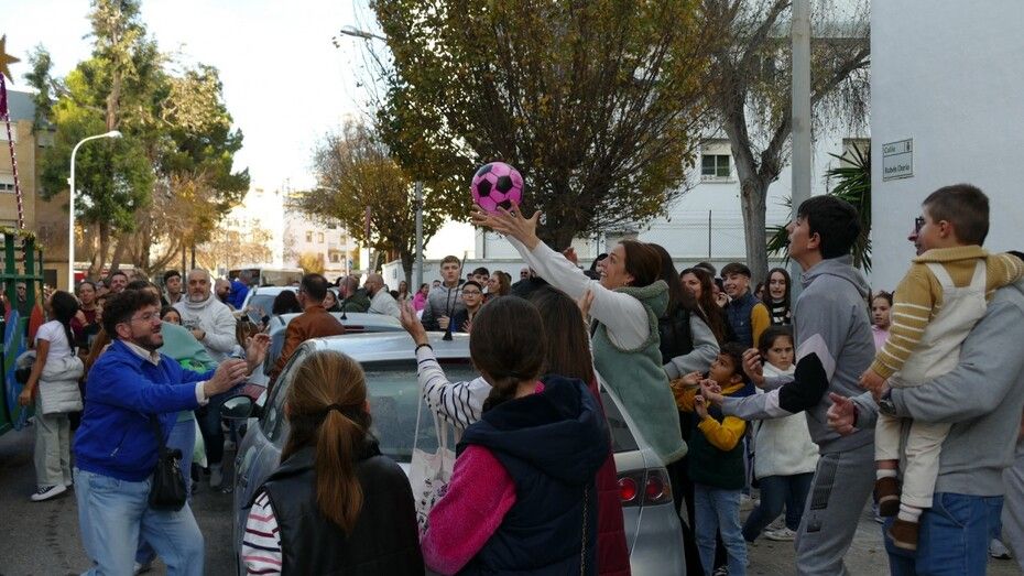 Durante todo el recorrido, ese ha sido el principal atractivo y más de 1.200 pelotas han volado por los aires de manos del Cartero Real y la Estrella de la Ilusión que, animados y saludando a los niños de Rota, han hecho su entrada en la localidad acogidos con cariño.
