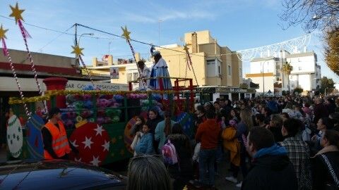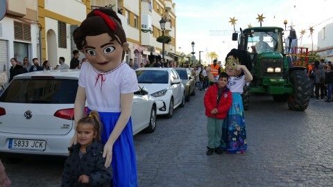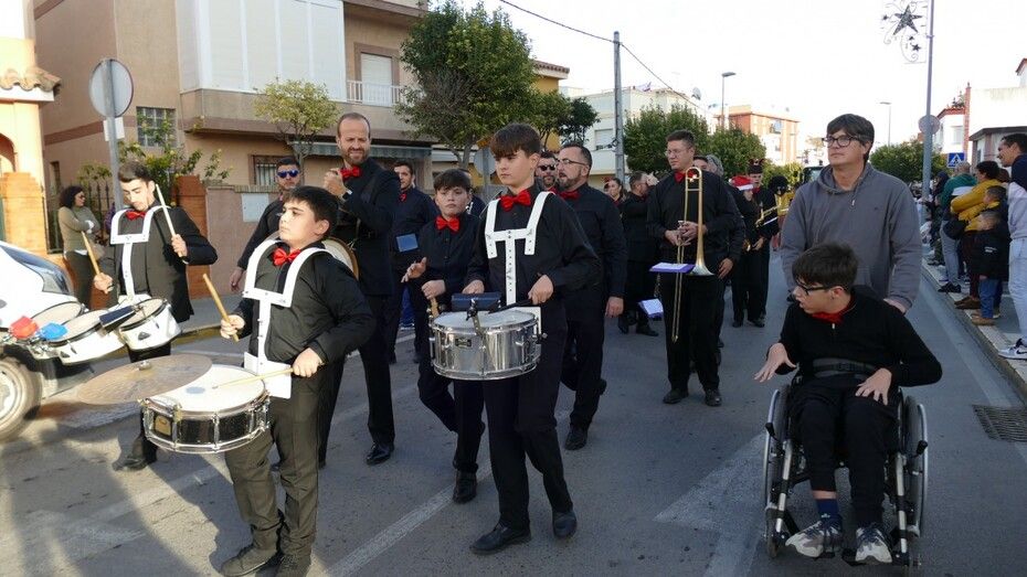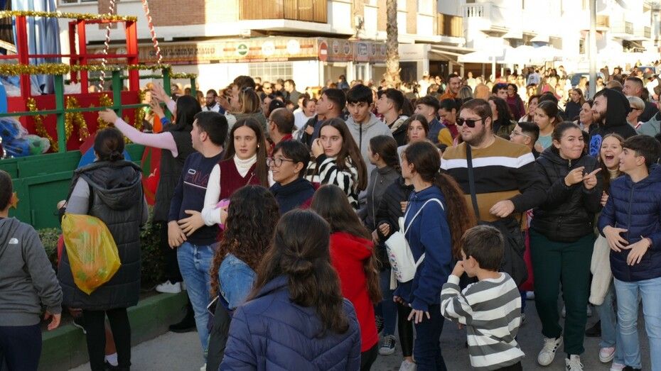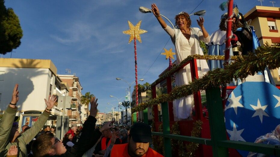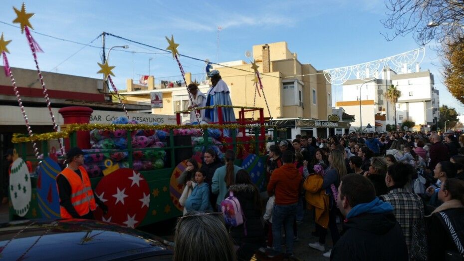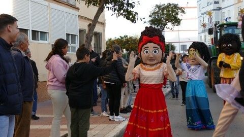 A las 16.30 horas salía la batea con el Cartero y la Estrella, precedidos por la banda de música de la Hermandad del Nazareno que abría paso al cortejo que aunque ha sido corto, con algunos personajes de la película 'Encanto' animando a los más pequeños, ha sido intenso a su paso.