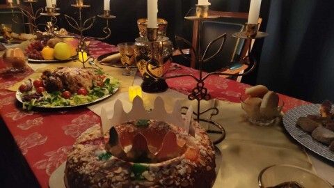 Las tres camas de los Reyes, sus zapatillas, una gran mesa con dulces, carne y bebidas, algunos regalos que ya están siendo empaquetados y una decoración cuidada al detalle hacen de este dormitorio una visita especial. Este año, el AMPA 'La Matea' del centro educativo 'Pilar Varo' ha incluido algunas novedades aunque en líneas generales, la línea sigue la del año pasado cuando se le dio un cambio total. Como elemento nuevo y destacado, está la chimenea para que Melchor, Gaspar y Baltasar estén calentitos durante las horas de descanso, pero además, se han incorporado luces nuevas o cortinas más largas que dan mayor calidez a la estancia.