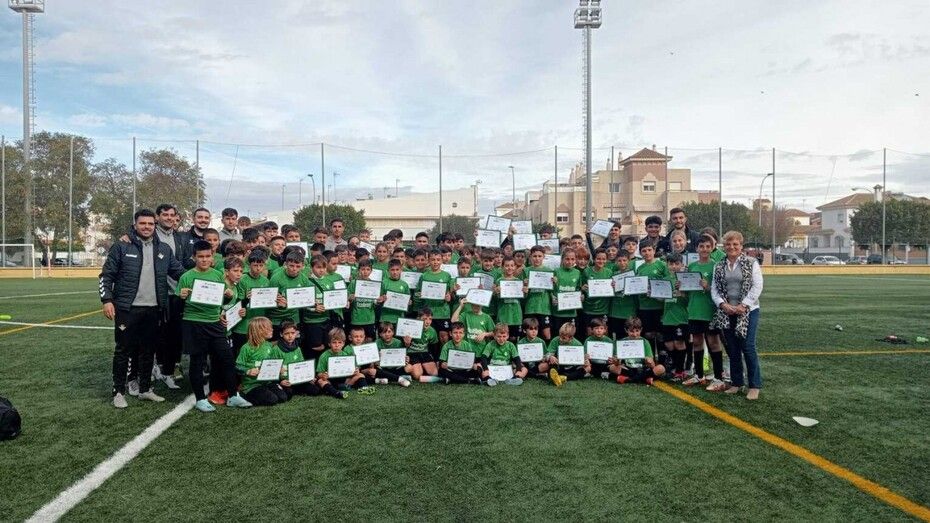 El complejo deportivo ‘Belén López Morales’ se ha estrenado en 2024 con la celebración del campus deportivo organizado por la Real Betis Academy que ha reunido a un centenar de participantes, menores que han disfrutado del fútbol y han aprendido en tres jornadas intensas de la mano de técnicos profesionales de Real Betis que se desplazaron los días 2, 3 y 4 de enero a las instalaciones deportivas municipales.
