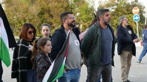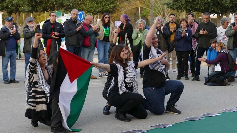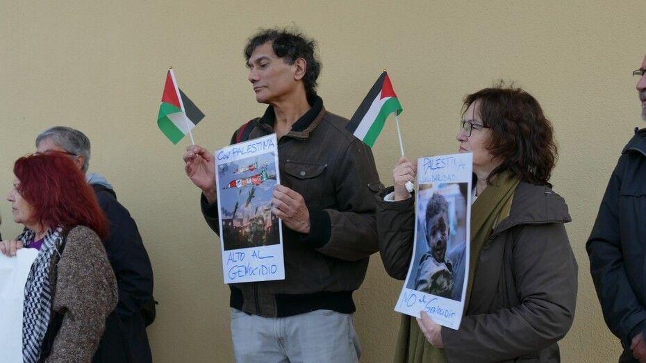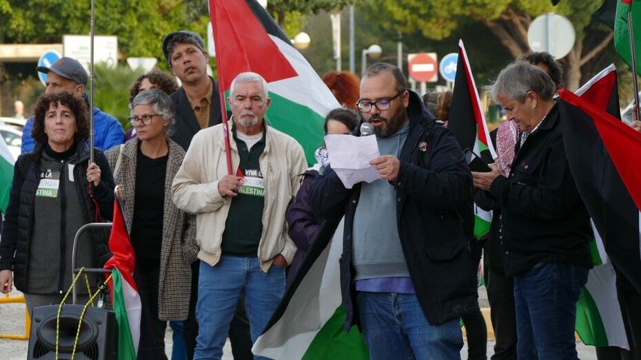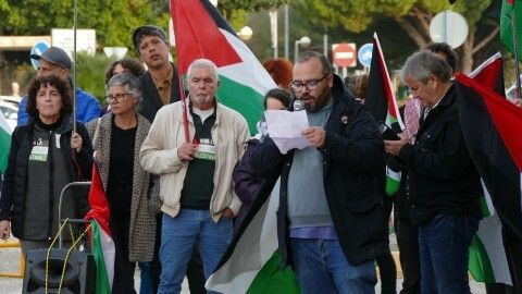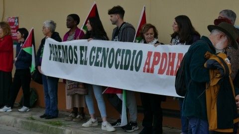 "Israel asesina, Europa patrocina", "Vosotros los sionistas sois os terroristas", "OTAN no, bases fuera" o "Viva la resistencia del pueblo palestino" se han podido escuchar en la media hora de concentración que es un punto y seguido a otras iniciativas y actividades que se celebrarán en próximos días en localidades de la provincia de Cádiz como ciclos de cine sobre Palestina, debates, actos en institutos para mostrar su rechazo al genocidio del pueblo palestino, etc.
