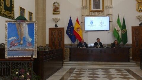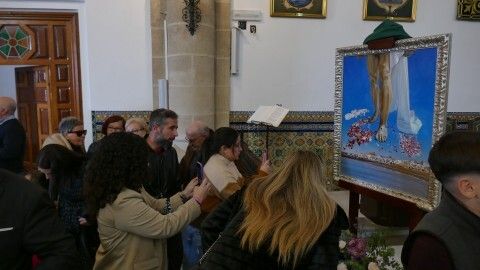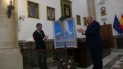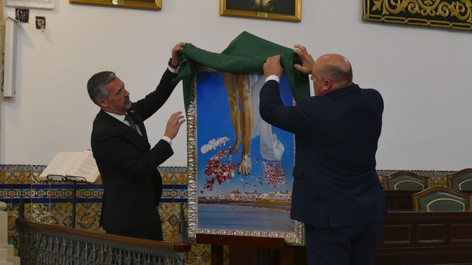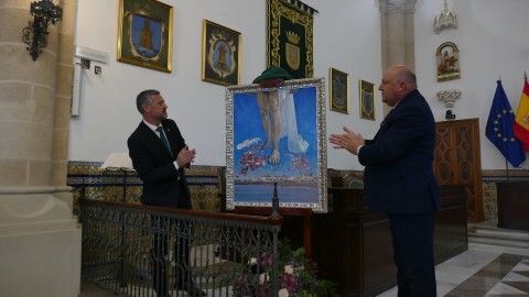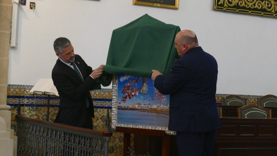 La obra la descubrían el alcalde de Rota, Javier Ruiz Arana, y el presidente del Consejo Local de Hermandades y Cofradías, José Manuel Sánchez Peña, y se ha entregado en réplica al propio cartelista, al Consejo de Hermandades y a la Hermandad del Amor ya que es su titular el que ilustra la pintura, recogiéndolo su hermana mayor, Pepi García.