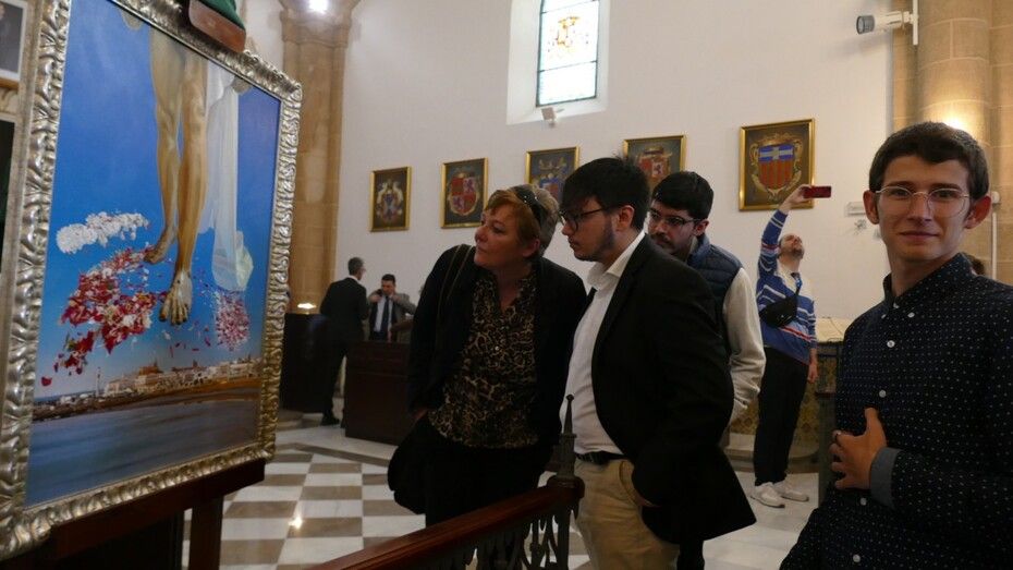 Centrándose en la que hoy reunía al público en el Castillo de Luna, Encarna Niño manifestó la apuesta del gobierno local por el talento local y felicitó al cartelista por su obra, que pasará a ser patrimonio de Rota con una pintura que enriquece el anuncio de la Semana Santa.