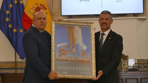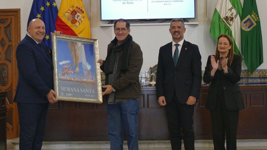Sin olvidarse del equipo que forma la comisión permanente del órgano que preside por su implicación, felicitó al autor del cartel por su obra y por haber plasmado el culmen de la pasión con tanto realismo. De igual forma, destacó la labor del presentador y deseó suerte al pregonero Ignacio Liaño de cara al próximo 16 de marzo, cuando tenga lugar el pregón de la Semana Santa de Rota.