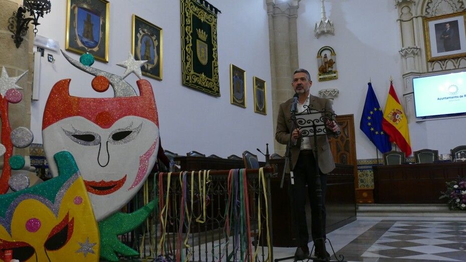Terminada esta primera parte del acto, tomaba la palabra la delegada de Fiestas, Esther García, que ha dado las gracias al autor por su compromiso y aceptar el encargo municipal. La concejal ha señalado que los carnavales se viven de muy diversas maneras y que es una celebración en la que todos pueden encontrar su espacio: los que se disfrazan, los bares o peñas que organizan actividades, los que salen a ver el ambiente aunque no participen de forma activa o los que salen en agrupaciones son solo una parte del Carnaval a los que la delegada ha querido agradecer su aportación. A su juicio, esta fiesta en Rota tiene cabida para todos y con ese deseo citó algunas de las citas que se celebrarán en el mes de febrero entre pasacalles, pregones, talleres infantiles, actuaciones, festival, fiesta joven, etc.