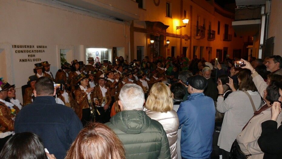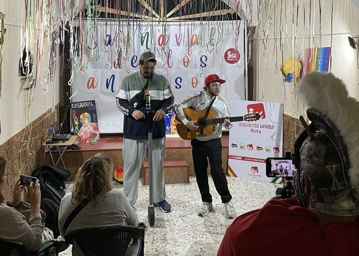 Hoy, las chirigotas y romancero han cantado en el interior de la sede de IU, excepto la murga de la Asociación de Personas con Discapacidad, 'Los gentlemen', que lo ha tenido que hacer en plena calle Blas Infante dado que es un grupo muy numeroso y faltaba espacio para ellos. Han sido muy aplaudidos porque esta es una muestra más de que el Carnaval es diversidad, inclusión y diversión.