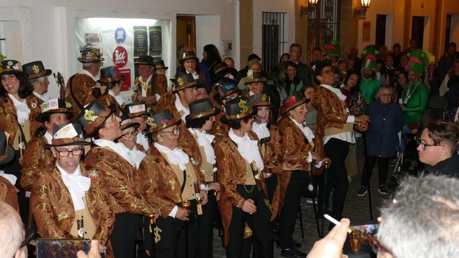 A la ajetreada tarde del sábado, en la que han coincidido la celebración de la concentración de motos 'Villa de Rota' y la salida de Nuestra Señora del Rosario por las calles de la localidad para presidir un rosario tras su vuelta con motivo de la restauración a la que se ha sometido, se ha sumado Carnaval. En este caso, venía de la mano de Izquierda Unida, que con la intención clara de seguir aportando a esta fiesta su granito de arena, ha decidido este año organizar el 'Carnaval de los ansiosos'. De esta forma, a una semana de que Rota comience oficialmente sus fiestas de Don Carnal, entre el 10 y el 18 de febrero, los de IU se adelanta para que aquellos a los que les impacienta empezar a ver ambiente y agrupaciones por las calles, se quiten el gusanillo.