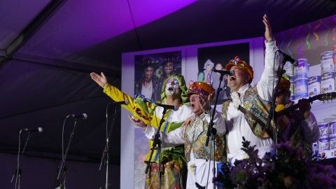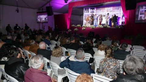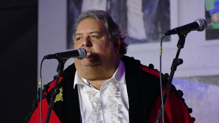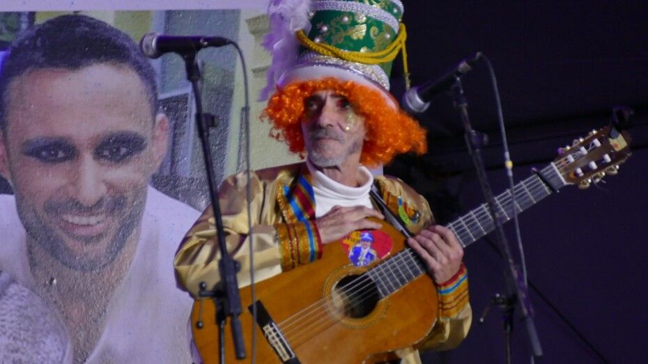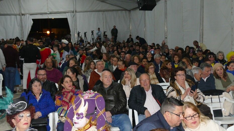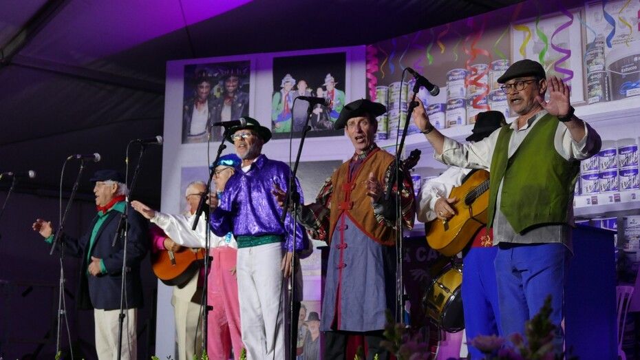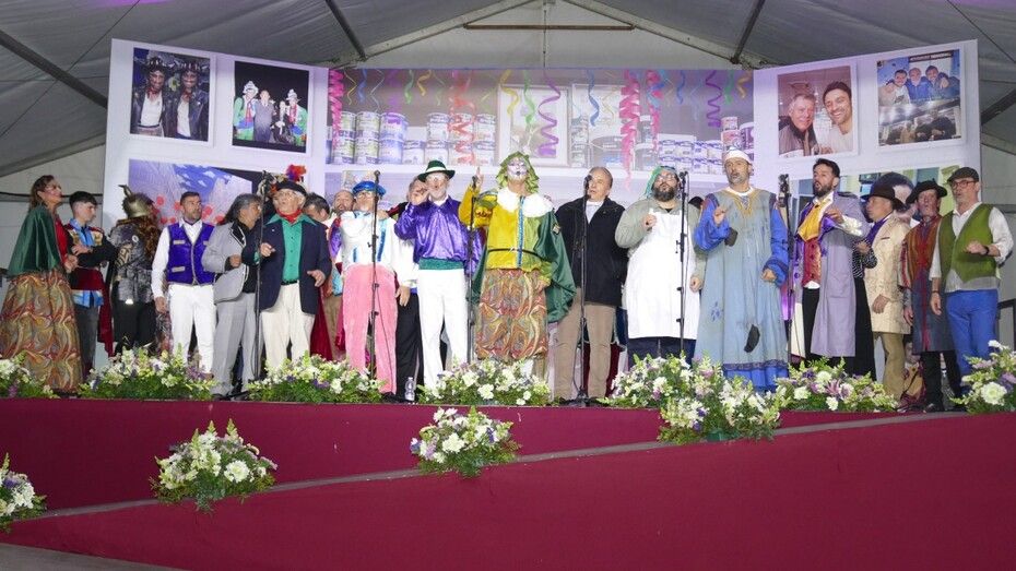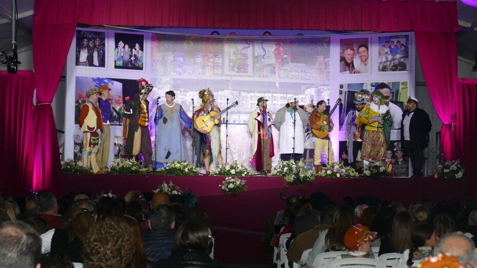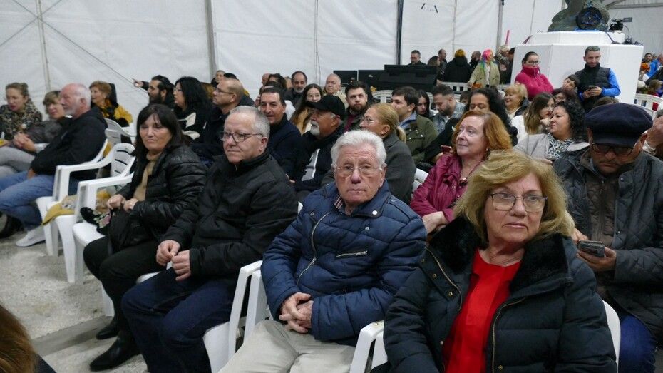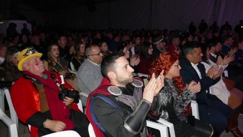 En un alto porcentaje, el pregonero ha cantado más que ha hablado porque como ya había dicho en alguna ocasión, se le da mejor cantar que hablar y eso es lo que ha ofrecido. Para ello, ha tirado de muchos amigos del mundo del Carnaval a los que ha hecho desfilar por el escenario de la carpa, llena de público.