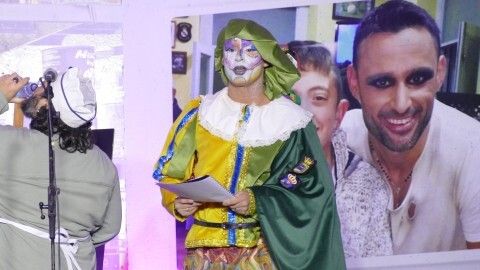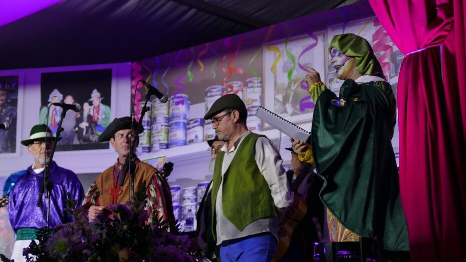 'Tati' ha hilado su pregón dando pequeñas pinceladas de su vida en Rota, localidad a la que lleva unido laboralmente desde 2010, y donde ha forjado grandes amistades. Han sido esos amigos roteños, muchos de ellos vinculados al Carnaval, parte protagonista de su pregón y del decorado que acompañaba a este vendedor de pinturas que hoy se presentaba como un pintor de fantasías carnavaleras. De hecho, comenzaba su presentación frente a un lienzo con el retrato de su padre, orgulloso entre el público de la oportunidad que su hijo tenía ante sí, y que él mismo vivió en 2009 en esta misma localidad.