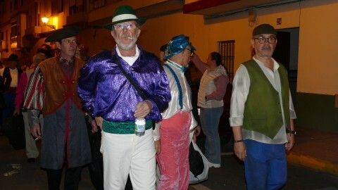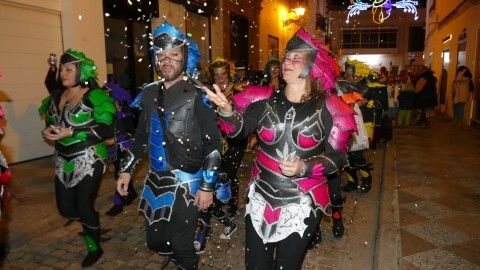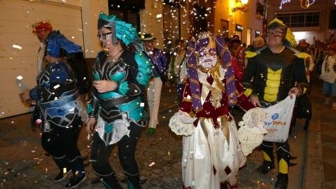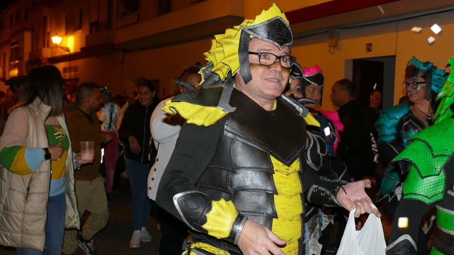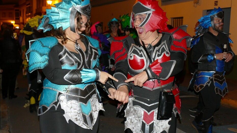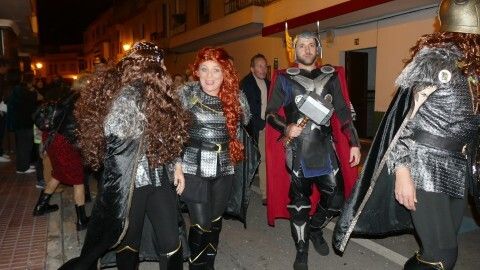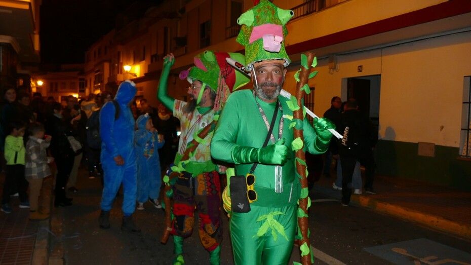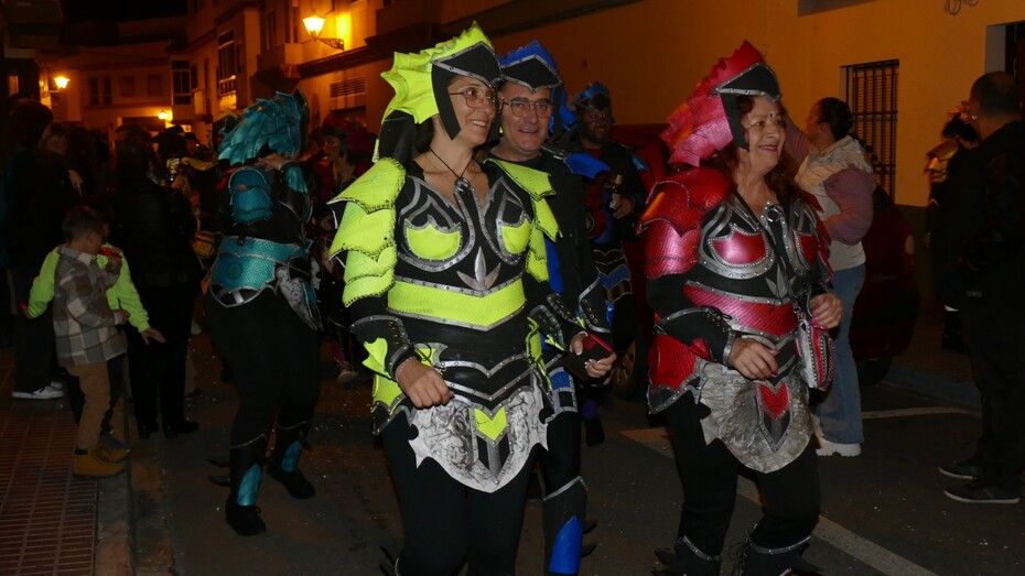 Representantes de agrupaciones de Rota, grupos de amigos, ciudadanos en general, miembros del gobierno local, damas del Rosario y el pregonero y los componentes de 'Los Majaras' llenaron de color el desfile de disfraces que recorrió algunas calles del centro hasta llegar a la carpa instalada en la avenida San Juan de Puerto Rico, donde sobre las 21.30 horas empezaba el XXXVI Pregón de Carnaval.