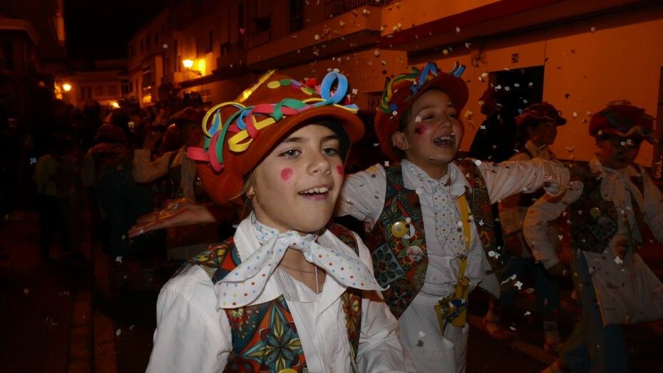 Ganas de pasarlo bien, de disfrutar de la fiesta y de hacer de la de Don Carnal la excusa perfecta para estar en la calle, se vieron en este pasacalles que empezó con mucha fuerza, especialmente, llevando la voz cantante la chirigota infantil 'Abriendo paso' que dio muestras desde el principio de que este Carnaval está siendo muy intenso para ellos. Se sumaban otras agrupaciones, no todas las que salen en Rota, y sí un nutrido grupo de carnavaleros portuenses que acudieron a Rota para estar con el pregonero.