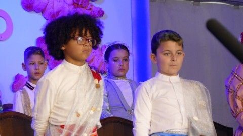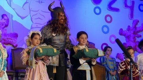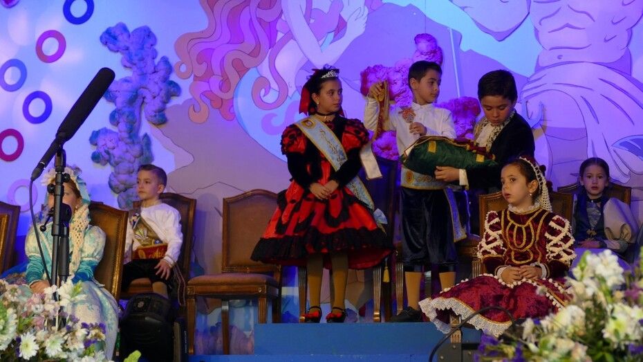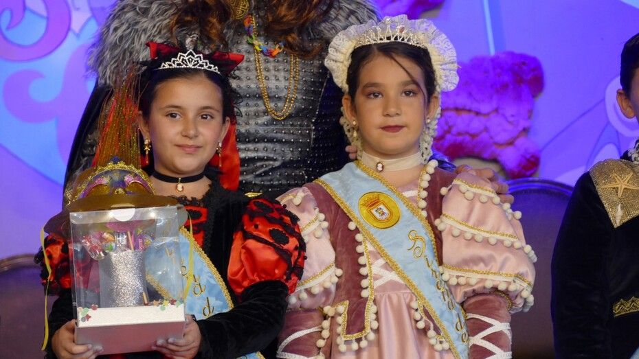 Las 10 niñas que representan a peñas y entidades como ninfas, y los 9 niños que lo hacen como atlantes, han subido al escenario del brazo de sus acompañantes presentándose uno a uno en este Carnaval 2024 que termina mañana.