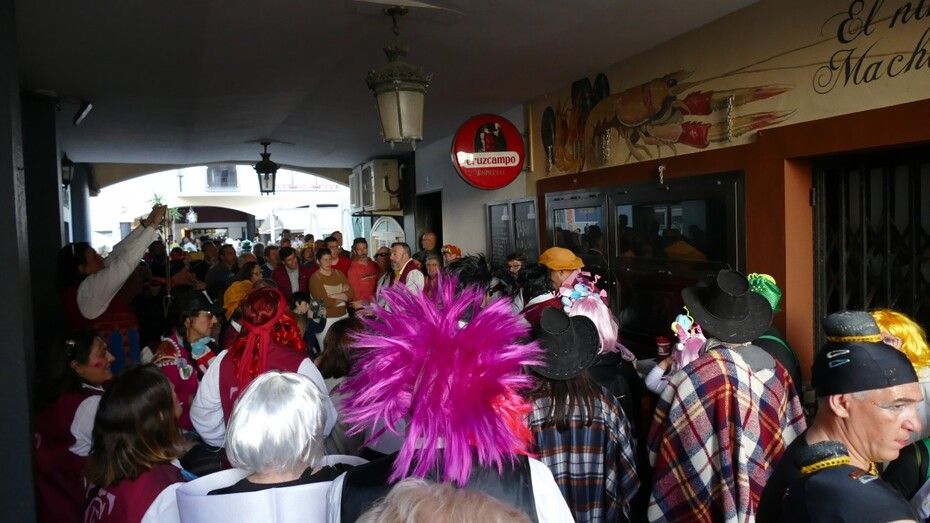 Los más carnavaleros permanecieron en la Mina, Mina Chica, calle Prim, San Roque o esquina de calle Charco y García Sánchez, que son los puntos en los que, junto al Pasaje del Carnaval, escogen las agrupaciones para cantar y así siguieron, aunque ya con menor afluencia, hasta entrada la madrugada. Dos momentos claves tuvo la tarde con la actuación de la chirigota 'El niño de Isabelita 2' y 'la comparsa Cadígenas', que congregaron a muchísimo público en su actuación ya que este año ha sido más complicado verlos a pie de calle como en otras ocasiones.