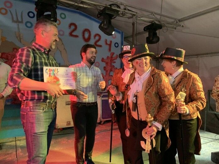 El alcalde de Rota, Javier Ruiz, que junto al delegado Jesús López Verano, participó en la entrega de premios y diplomas de agradecimiento a los colegios, dio las gracias a todas las personas participantes, ya fuera en el concurso o fuera de él, y animó a terminar la noche con la música de la orquesta 'Blue Sound' que hizo bailar a grandes y pequeños en la carpa para despedir el Carnaval 2024.
