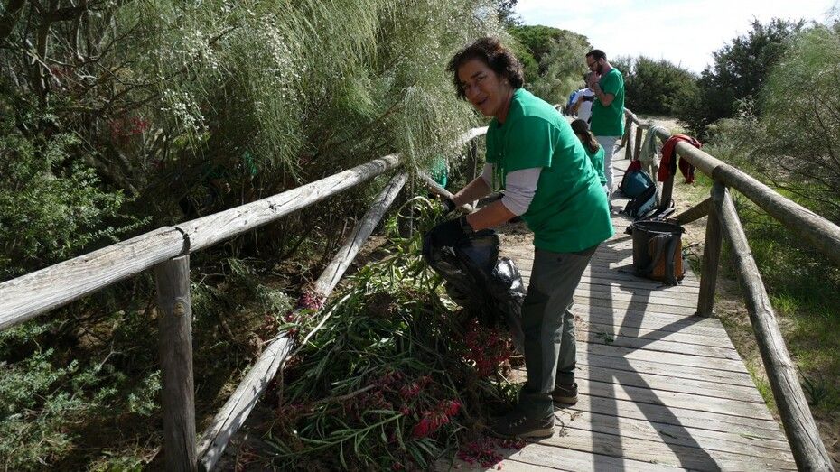 La actividad se ha centrado en los márgenes de la pasarela de madera que discurre en paralelo por La Forestal, en la zona prelitoral, de donde han eliminado numerosos ejemplares de esta planta invasora. Para ello, han contado además con ayuda del Ayuntamiento de Rota que ha facilitado herramientas y medios logísticos para la retirada en cubas así como asesoramiento técnico del personal de Transición Ecológica.