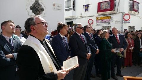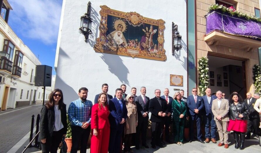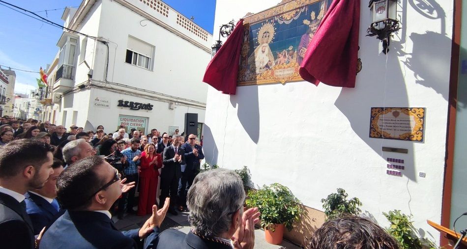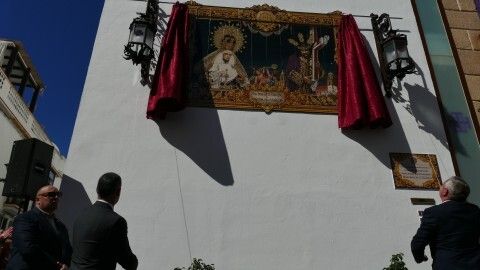 Bendecido el retablo cerámico que pone a Jesús Nazareno y la Amargura en pleno centro de Rota