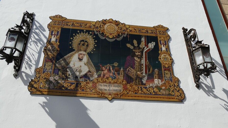 Muchos roteños, hermanos y cofrades se han dado cita en la esquina de las calles Isaac Peral y Castelar para ver el descubrimiento de un gran azulejo de 2,50x1,70 metros, obra del artista Carmelo Del Toro Ponce, que se ha encargado de retratar a Nuestro Padre Jesús Nazareno y a María Santísima de la Amargura rodeados de una orla con muchos motivos roteños. Las caras del Señor de Rota y su Madre están encuadradas en un marco con claras señas locales donde se aprecia la Torre de la Merced, la iglesia de Nuestra Señora de la O, las calabazas mayetas o la Llave de la Ciudad que se le entregó por parte del Ayuntamiento de Rota al Nazareno por la devoción que le profesa todo un pueblo.