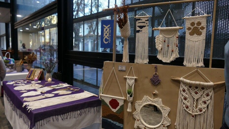 Cristina Torres, Ana López, Carmen Ruiz-Mateos, Nadia Goetz, Luisa Raffo y Charo Escudero han podido compartir con el público sus artículos artesanos de cestería con cartón, mantones de feria, ropa de bebé, macramé, etc.