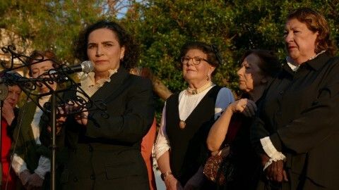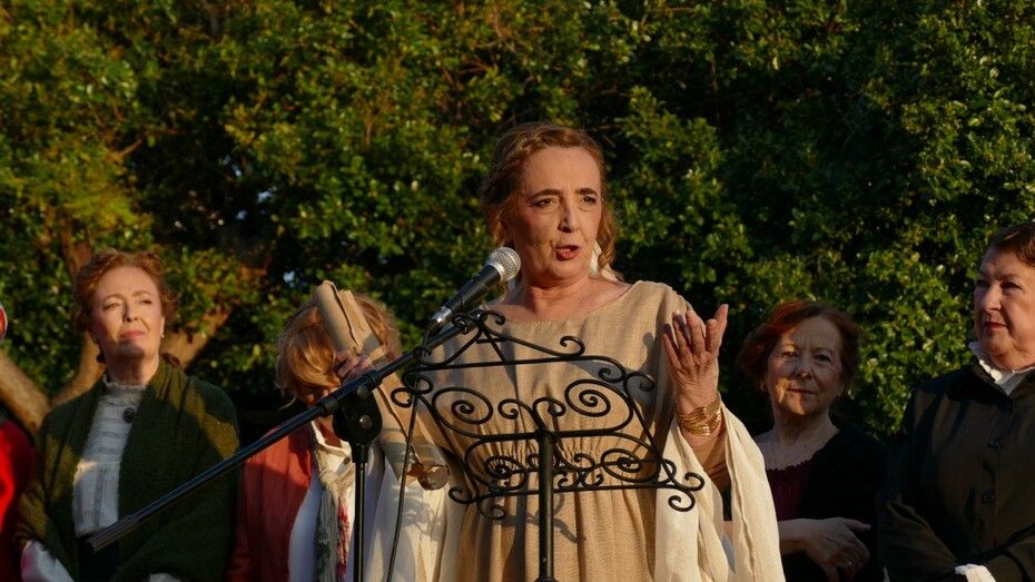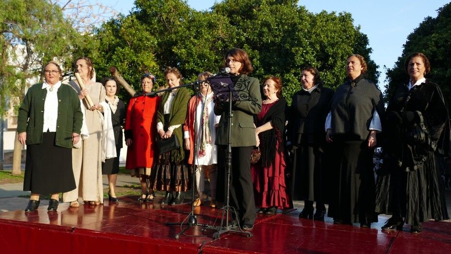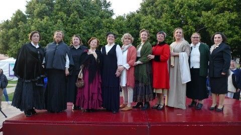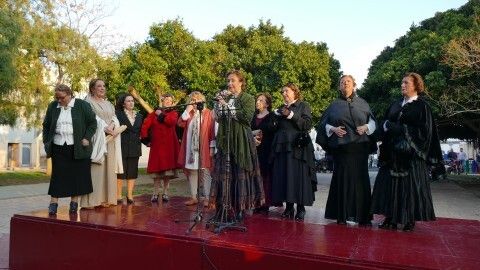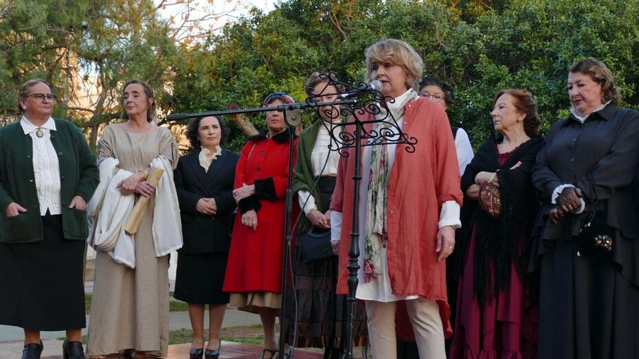 Así ha comenzado un representación teatral en el Bulevar Bahía de Cádiz, donde mujeres del grupo de teatro dirigidas por Bombastic Teatro, han hecho un trabajo encomiable, caracterizándose como aquellas mujeres de otra época que destacaron por ser las primeras en un mundo de hombres, como la escultura, el derecho o las matemáticas, o ser influyentes y con su lucha, conseguir que los derechos de las mujeres fueran ganando terreno como el voto femenino.
