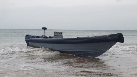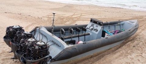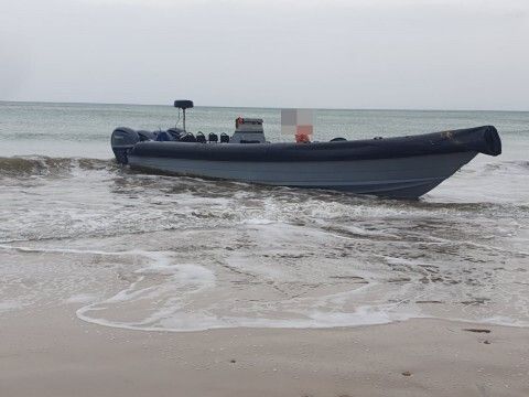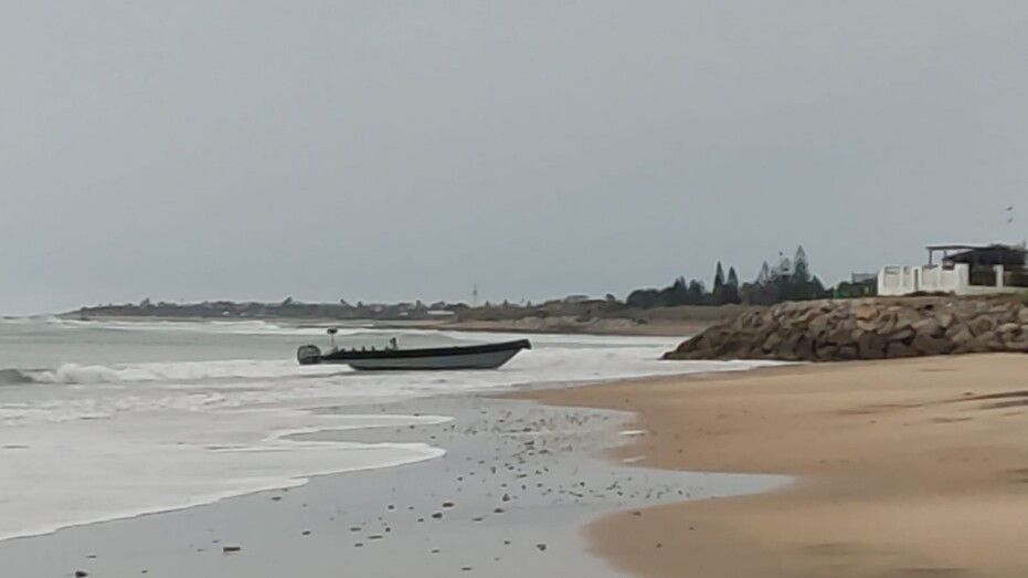 Policía Nacional, que se personó en el lugar, se encargó de la inspección comprobando que la embarcación llegó solo con el motor de emergencia en funcionamiento ya que los cuatro motores de 300cc estaban rotos. En el interior, aunque no había tripulantes ni rastro de droga, sí se encontraron restos de comida, botellas y unas sombrillas.