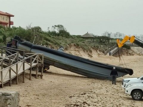En la mañana de hoy, la Guardia Civil, con la colaboración de los servicios de Playas del Ayuntamiento de Rota está retirando una narcolancha que fue hallada en la jornada de ayer jueves, en el mar, a la altura de la calle Mar Caribe en Aguadulce.