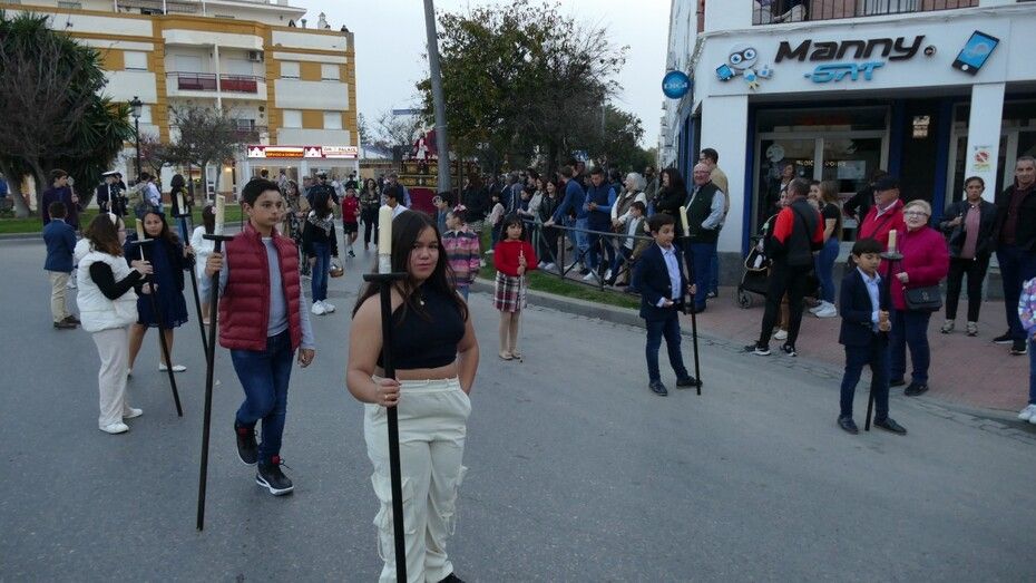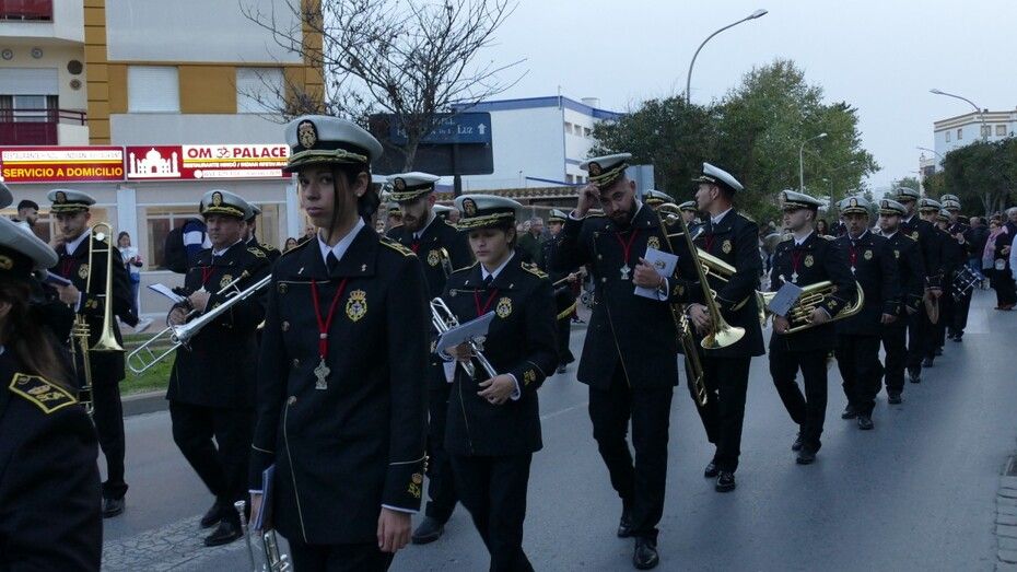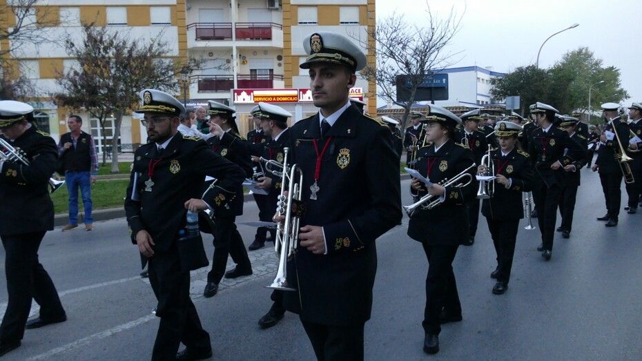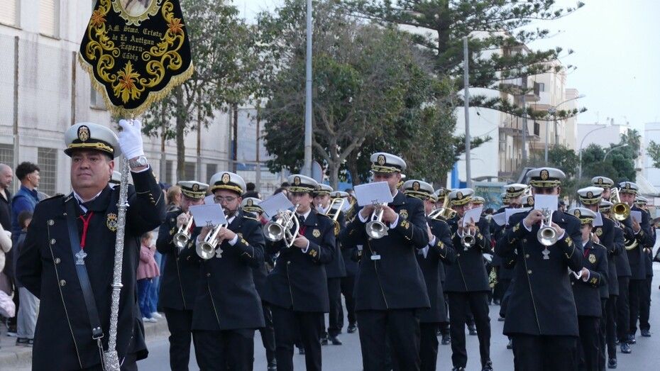 A las siete de la tarde partía del colegio Luis Ponce de León el breve cortejo que acompañaba al paso que contó en su discurrir por la Asociación Musical Cristo de la Antigua, de Espera (Cádiz), que se encargó de la nota musical de una tarde que, aunque nublada, fue agradable en temperaturas.