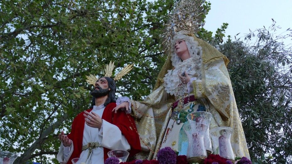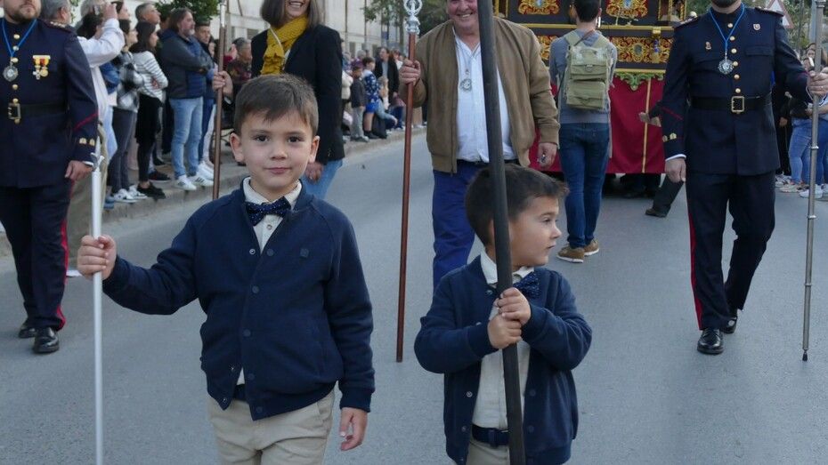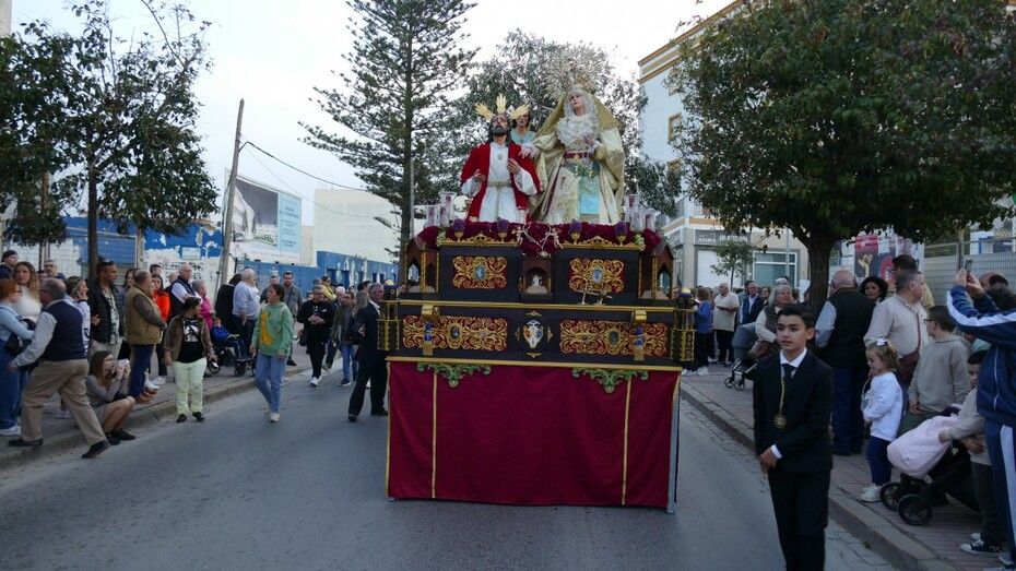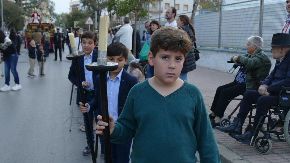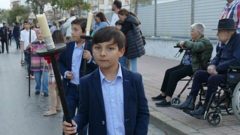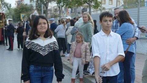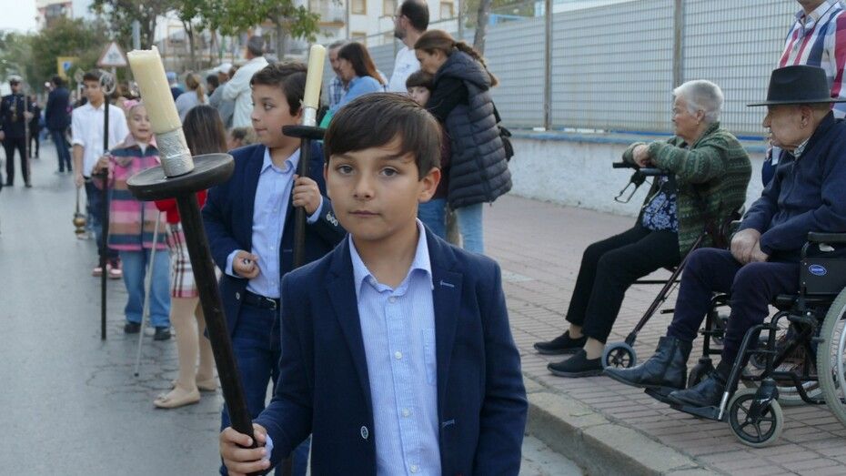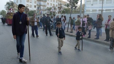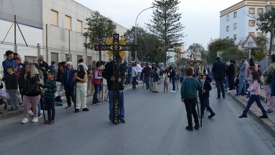 Vecinos de la barriada San Antonio esperaron a pie de acera al paso de estas imágenes que estuvieron precedidas por un cortejo de niños con varas.