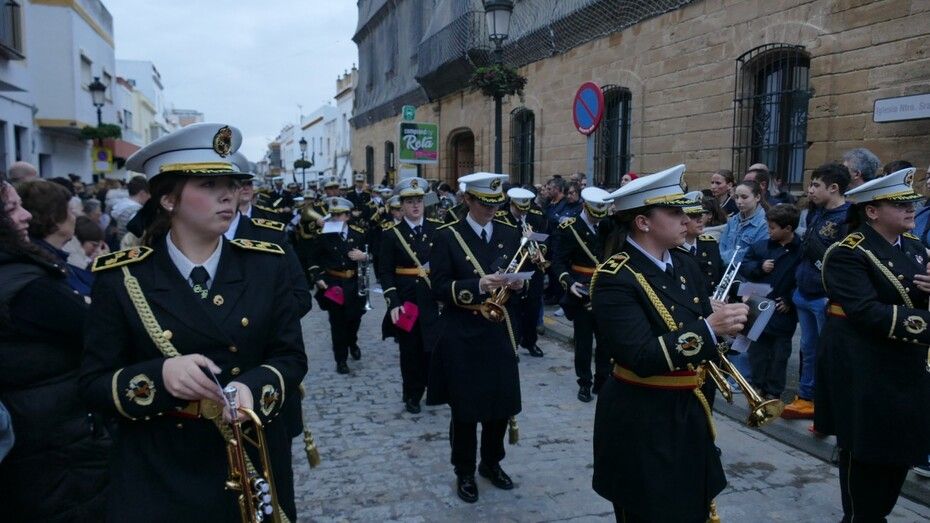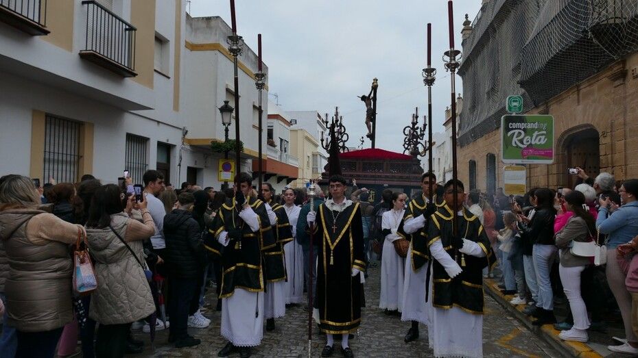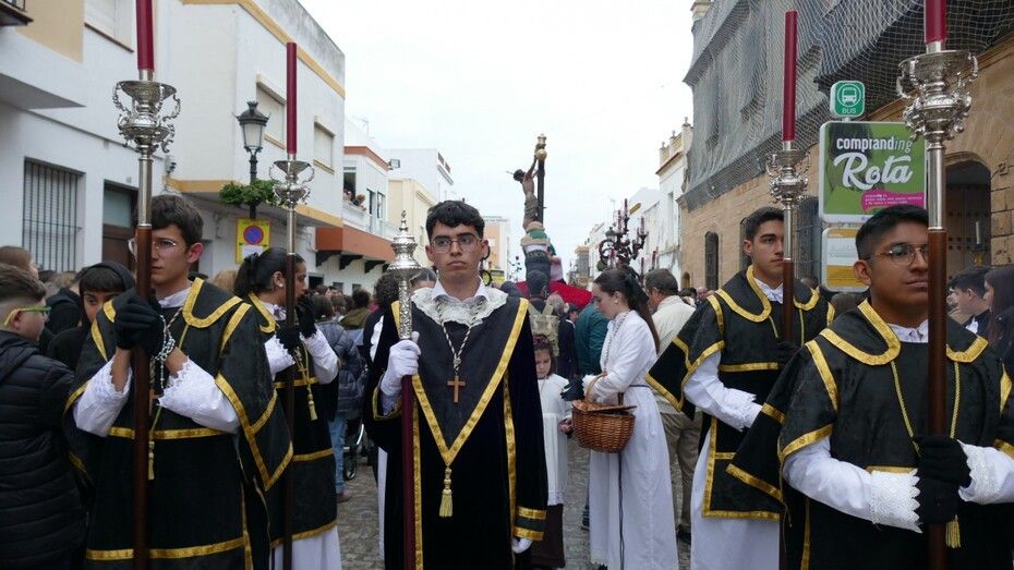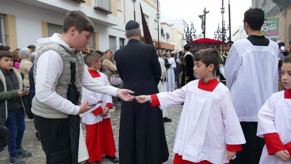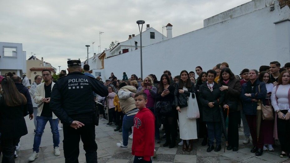 También influye que muchos cofrades aprovechan el lunes para irse a localidades vecinas, especialmente Jerez o Sevilla, pero en vista de que la lluvia también estaba afectando en esas zonas, había más gente en Rota. De esta forma, el Santísimo Cristo del Amor y Nuestra Señora de la Esperanza del Calvario han procesionado arropados por muchos ciudadanos que han esperado pacientemente la espera porque hay que señalar que la salida y el primer tramo de recorrido, se ha prolongado en bastante tiempo.