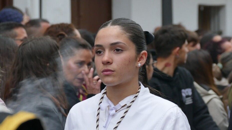 Dos momentos claves se han vivido en el inicio de la salida procesional, uno de ellos ha sido la primera levantá del Cristo del Amor que su capataz, José Antonio Moreno Puyana, junto a su madre, ha realizado dedicándosela con sentidas palabras a su padre fallecido. Era el nieto de este el que asentía desde las trabajaderas para levantar con impulso el paso al golpe de llamador. Se ha vivido mucha emoción provocando un nudo en la garganta a más de uno. El otro momento, venía de manos de la cantante Rocío Ruiz, que a pie de acera le ha dedicado una plegaria a la Esperanza del Calvario con su vozarrón y arte, mientras la cuadrilla de cargadoras, todas mujeres, iba girándola para enfilar los primeros metros de su estación de penitencia.