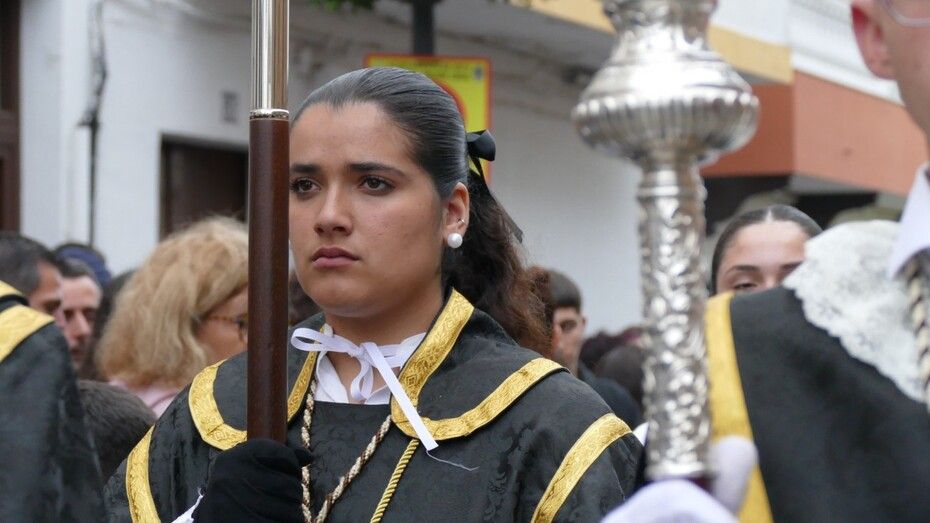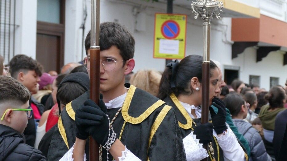 Pese a la espera, el Amor y la Esperanza han podido salir a la calle para alegría de muchos cofrades. Este año, el cortejo lo componían unos 100 hermanos entre penitentes, costaleros y cargadoras, destacando un buen grupo de niños en la pavera que la Hermandad del Amor, como todas, necesita para afianzar la cantera. Además, iba una representación de la Hermandad del Rocío, con quien comparten sede canónica, y el paso de la virgen desfilaba escoltado por una pareja de guardias civiles.