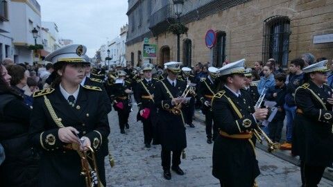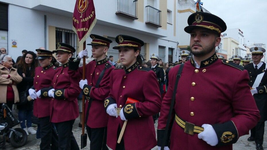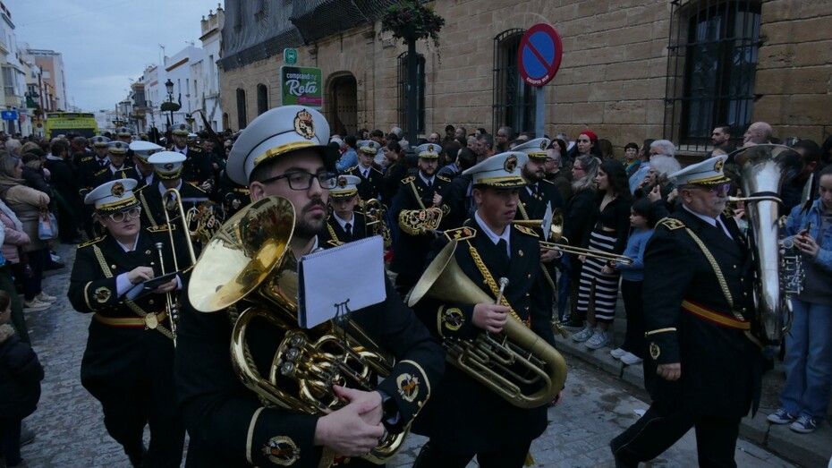 La Banda de Cornetas y Tambores Santa Bárbara de La Línea de la Concepción (Cádiz) con el Cristo del Amor y la Banda Municipal de Música de Barbate, con la Esperanza del Calvario, han marcado los sones de esta salida procesional con marchas que en más de un punto del recorrido han sido aplaudidas.