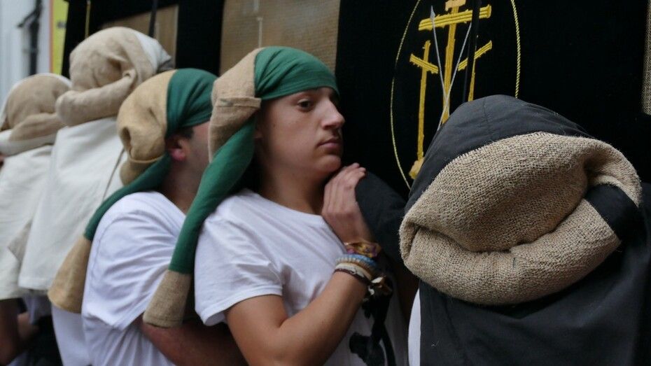 A partir de ahí, y quizás algo lento, se ha desarrollado el primer tramo de salida procesional en una noche fría, en la que sopla algo de viento y en la que se mira al cielo con el deseo de que la lluvia aguante y permita que la recogida se desarrolle según lo previsto.