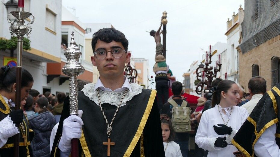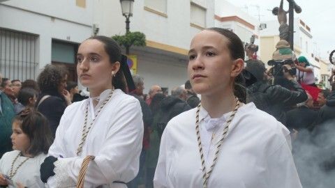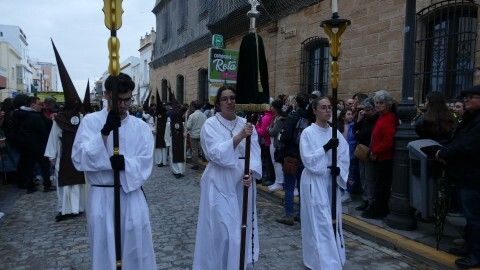 Hasta el último momento tuvo que apurar la Hermandad del Amor de Rota para decidir si ponía un pie en la calle o se quedaba en capilla. La inestabilidad meteorológica que está marcando la Semana Santa en su inicio, y que parece que se va a mantener a lo largo de los días, puso en peligro el Lunes Santo y llegó a barajarse la posibilidad de que, al igual que el Domingo de Ramos, no hubiera procesiones. Pero finalmente, tras varias reuniones de la junta de gobierno y analizar los partes meteorológicos más cercanos a la hora de salida, se decidió retrasar esta en una hora y con ello, que hubiera estación de penitencia.