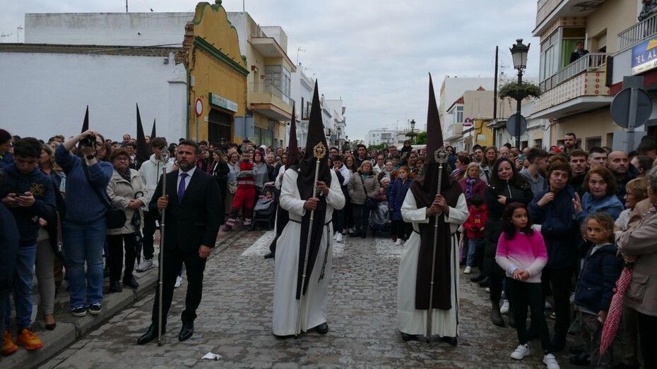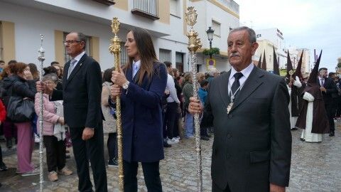 José Álvarez Moreno y José Antonio Moreno Puyana, capataces de los pasos, han marcado el devenir de esta estación de penitencia, la primera de la Semana Santa de Rota 2024 en la calle.
