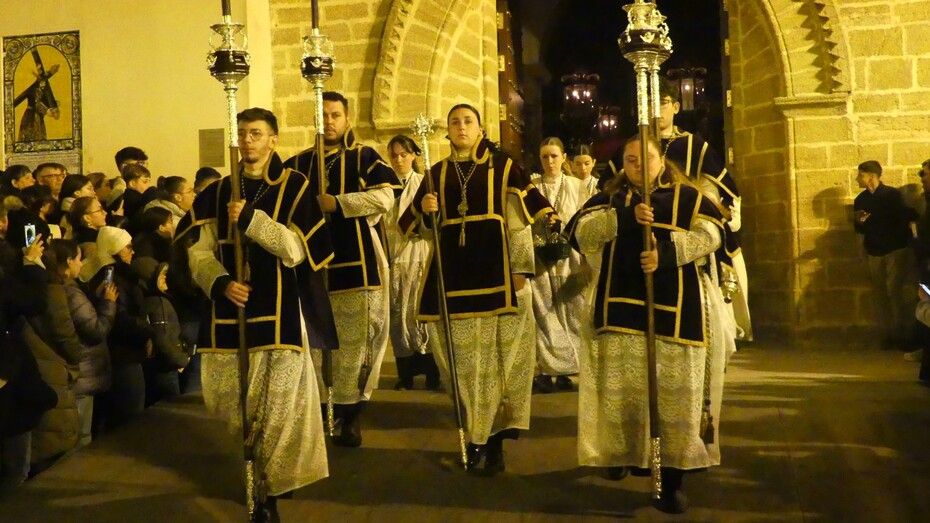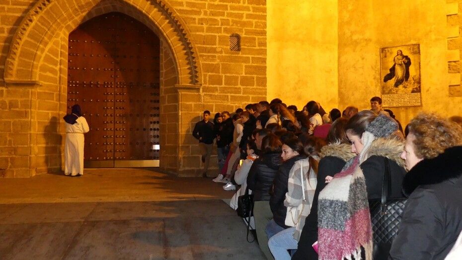 Esa devoción se pudo palpar desde primera hora, cuando la plaza Bartolomé Pérez, a muchos minutos aún de que saliera la cruz de guía, ya estaba llena de un público que esperaba con ganas ver abrirse las puertas de la parroquia de Nuestra Señora de la O. Todo eso, a pesar de que el viento de poniente soplaba fuerte y hacía poco agradable la noche, pero es lo que tiene el Cautivo, que pocos pueden evitar no acudir a acompañarlo en Semana Santa.
