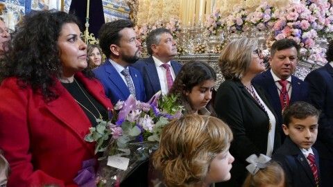 En la capilla han estado presentes miembros de la Corporación municipal que han participado en la ofrenda floral que se ha hecho a los dos titulares como muestra de apoyo a toda la labor de la cofradía.