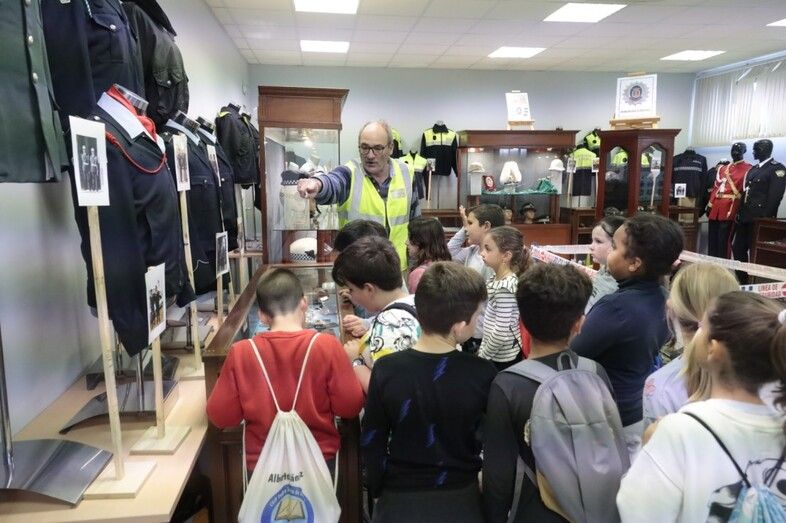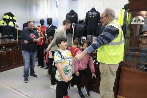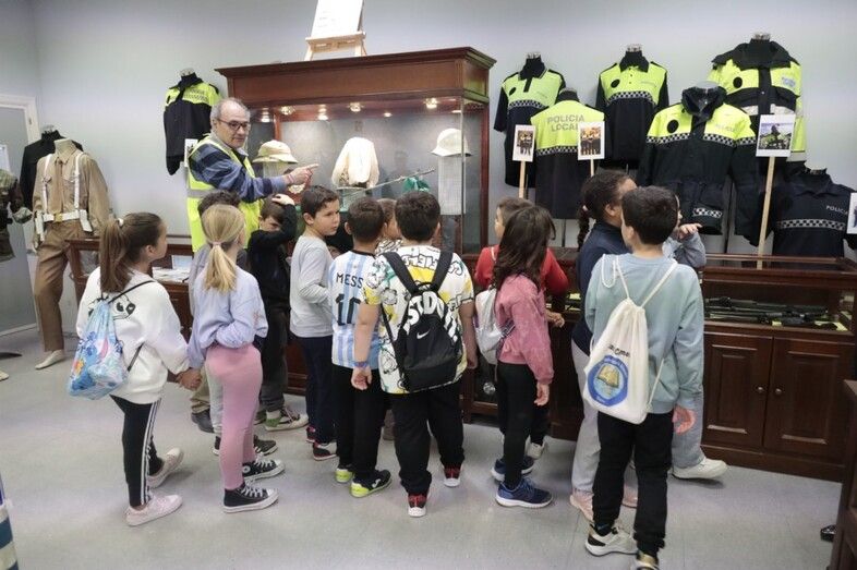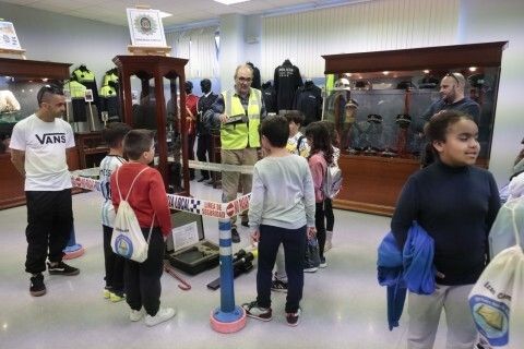 Ayer lunes comenzaron las primeras visitas de escolares con un grupo de alumnos del colegio Pedro Antonio de Alarcón, en la que algunos agentes participaron dando detalles de algunos de los artículos expuestos, además de una muestra fotográfica de los últimos 50 años que revela la evolución del cuerpo a lo largo de la historia.