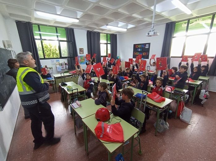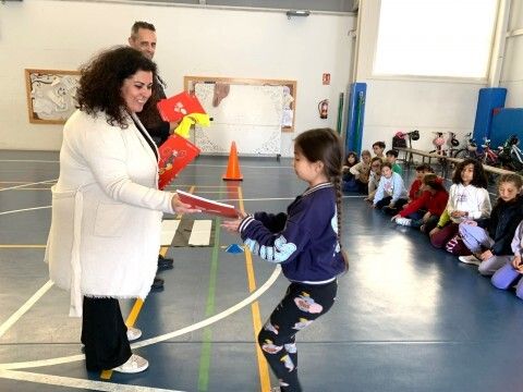En estas semanas, el taller de bicicleta que se está desarrollando en los centros educativos a través de la Oferta Educativa Municipal se completa con la entrega de material donado por la Fundación Mapfre, que apoya el programa, y con el que los escolares pueden seguir trabajando en los aspectos y normas que han aprendido.