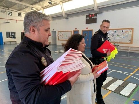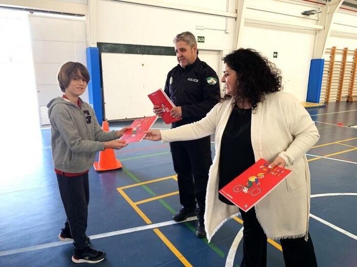 La delegada municipal de Educación, Laura Almisas, ha acompañado a los Agentes Tutores que imparten esta actividad para repartir entre el alumnado de 3º de Primaria de los ocho colegios de Rota, las mil unidades didácticas editadas por la Fundación Mapfre para que no solo recuerden algunos de los contenidos que han visto en el taller de bicicletas, sino para que puedan compartirlos con las familias o realizar en clases alguna actividad.