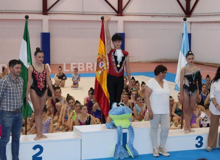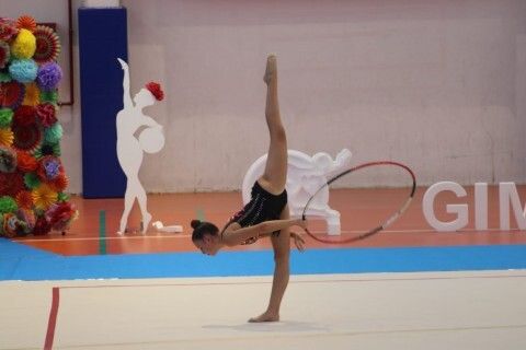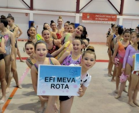 La competición permitió ver pasar por el tapiz a las gimnastas en grupos, de forma individual, con aparatos y sin ellos, cosechando las roteñas un buen papel, en especial, Sara Arana y Celia Puyana, que consiguieron medalla de plata, subiendo al podio.