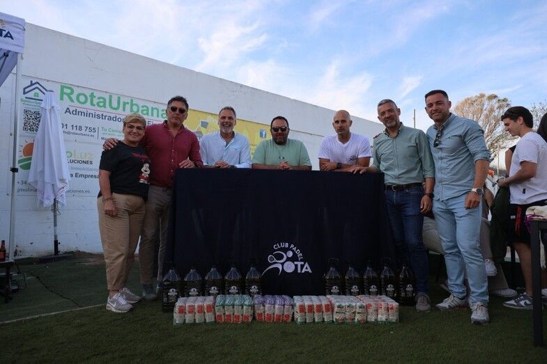 Además, y para hacer la cita solidaria, el Club Pádel Rota entregó al Ayuntamiento una donación de productos de alimentación que se habían adquirido a través de un sorteo entre los socios para la 'Cocina Solidaria'.