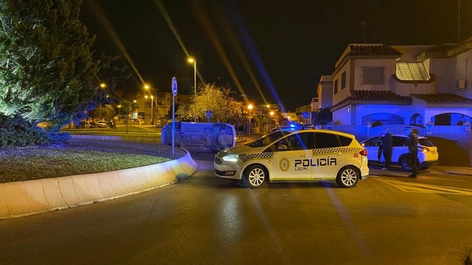 La Policía Local de Rota se ha personado en el lugar de los hechos y se está a la espera de la grúa para ayudar a colocar el coche en su posición normal y retirarlo en caso de que no pudiera reanudar la marcha.